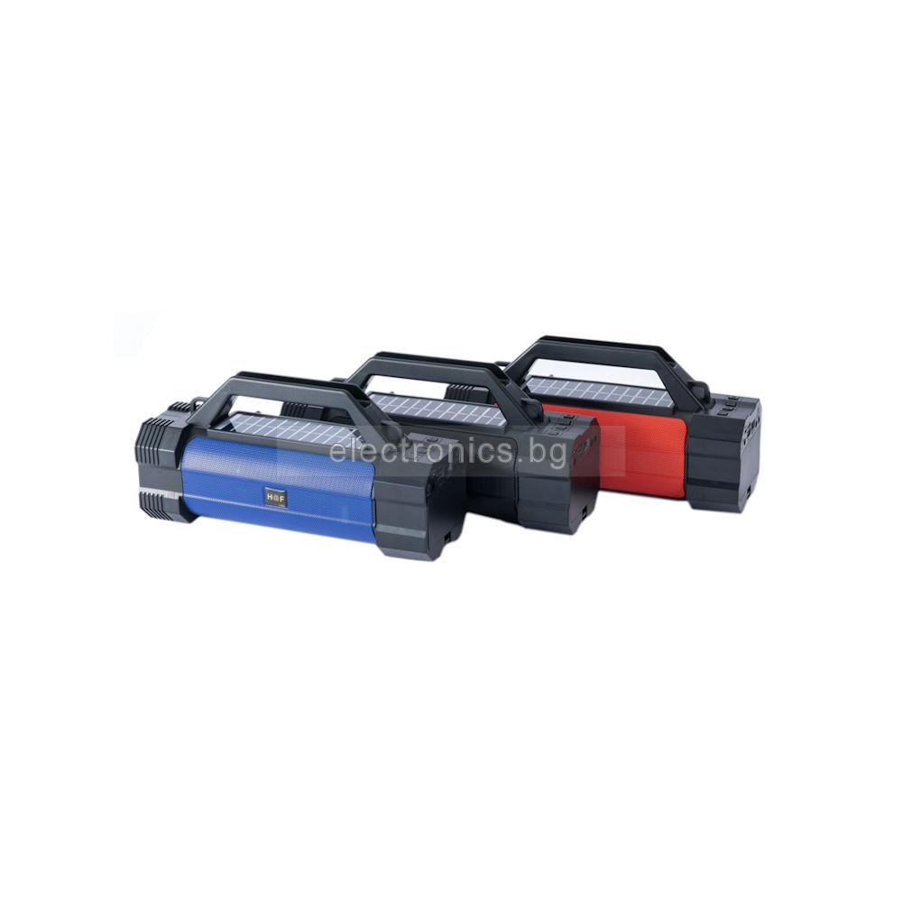Bluetooth колонка HF-U40, Соларен панел, Фенер, LED, FM радио, литиево-йонна батерия, слот за USB/micro SD CARD, TWS функция, черна